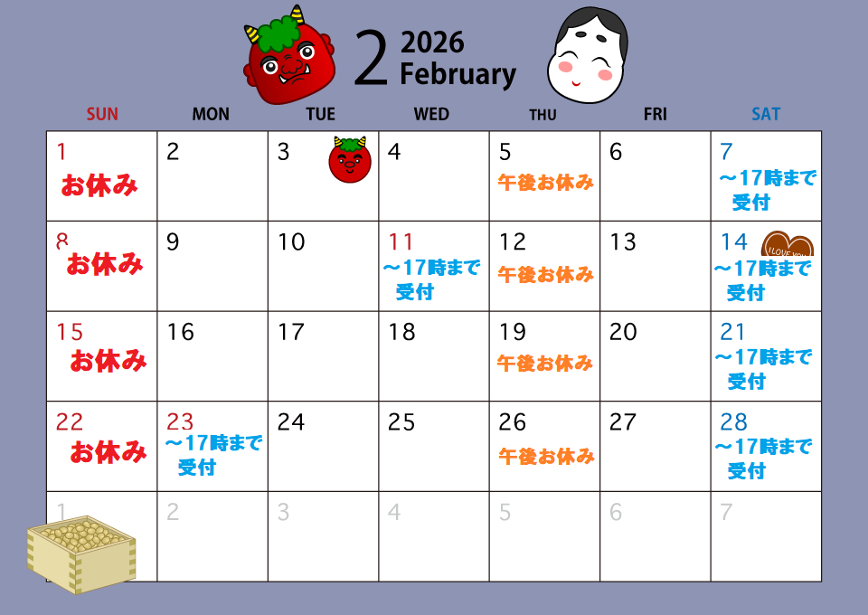 土 9:00~13:00 15:00~18:00(17:00最終受付)