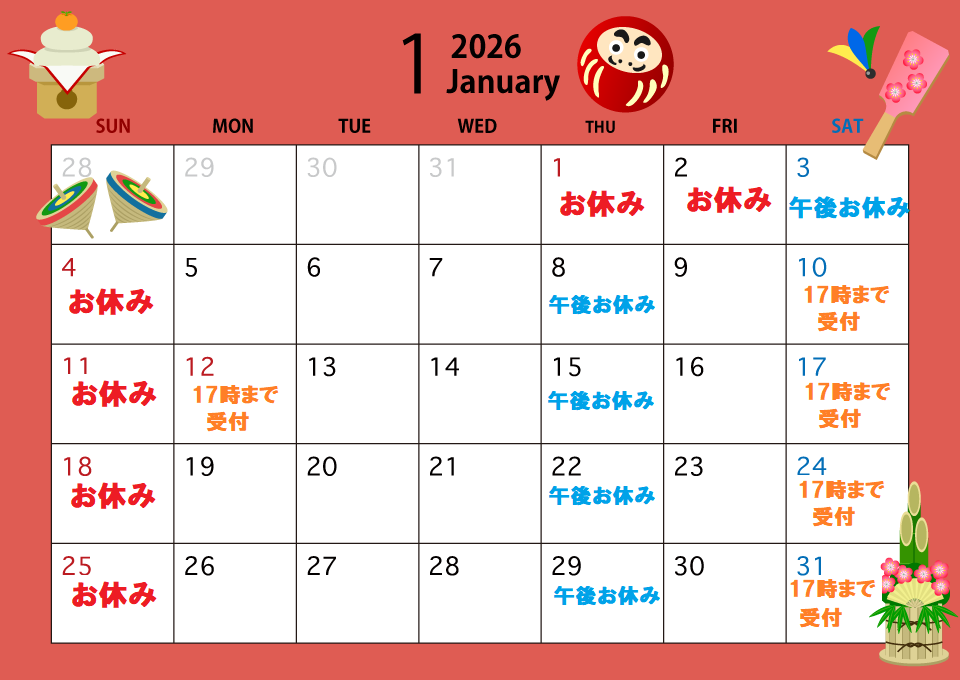 土 9:00~13:00 15:00~18:00(17:00最終受付)