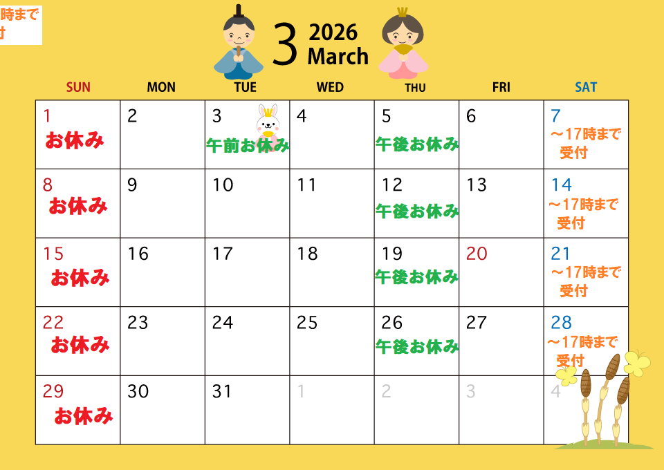 土 9:00~13:00 15:00~18:00(17:00最終受付)
